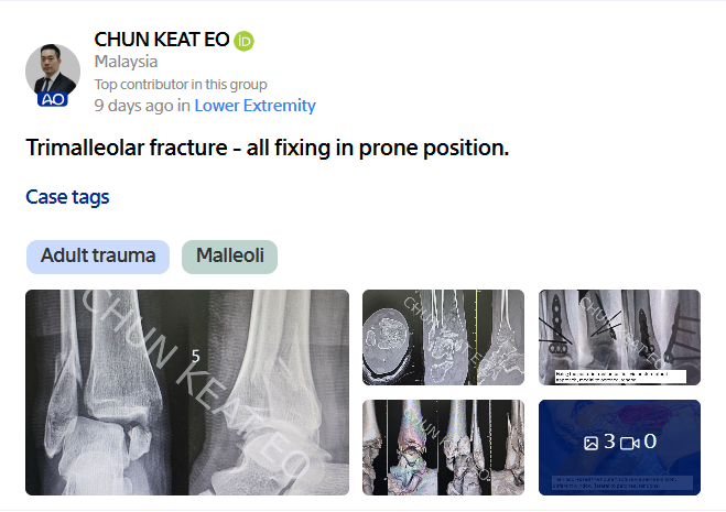 In this month’s Editor’s Pick, myAO is featuring a case on trimalleolar fracture which was submitted by Chun Keat Eo in the Lower Extremity discussion group on myAO.